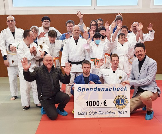 Mit großer Freude konnten sich die ID -Judokas über eine Spende von 1000 Euro vom Lions Club Dinslaken 2012 freuen. Jörg Spelleken, Präsident des Lions Club Dinslaken 2012, überreichte den Scheck.