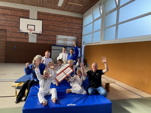 Grund zum Jubeln gab es auch bei unserem Judo-Kennenlern-Workshop. Hier wurde das Kinderbewegungsabzeichen NRW angeboten, mit Begeisterung durchgeführt und stolz die Urkunde mit Malbuch und Buntstiften im Empfang genommen.
