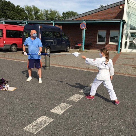 Die Judokinder des 1. Budokan Hünxe haben ihr Outdoor-Training wieder begonnen. Für die Wettkampfkids haben sich die Trainer einiges einfallen lassen damit die Abstände auch eingehalten werden. Cool ist die verlängerte Hand, womit eine kleine berührende Hilfestellung möglich ist.