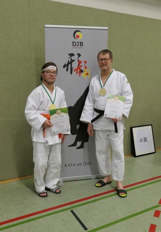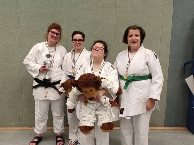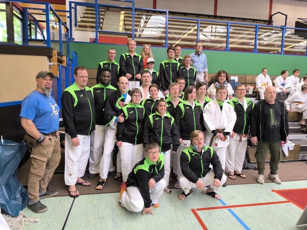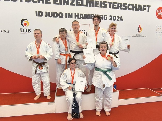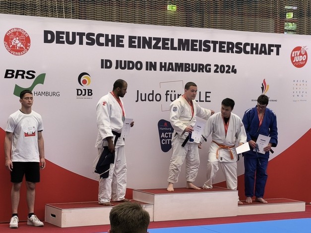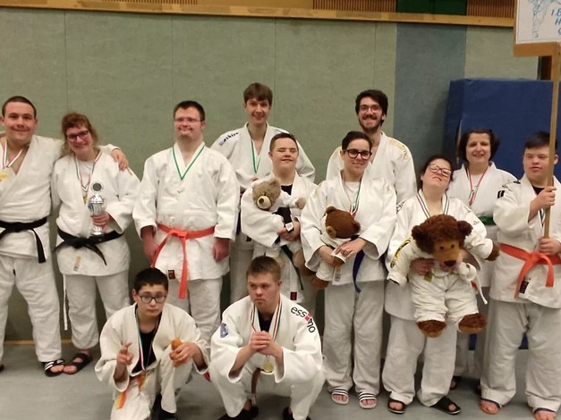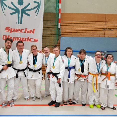 Drei Judoka vom 1. Budokan Hünxe starteten für NRW in der Haltegriffkata im ID-Judo. Drei Oberhausener waren als sogenannte Unified-Partner zusammen mit Judoka vom 1. Budokan Hünxe mit geistigen Beeinträchtigungen (intellectual disability = ID) am Start. Bei der Kata, bei denen genau vorgegebene Würfe oder Haltegriffe und deren Abwehr gezeigt werden müssen, traten die unterschiedlichen Wettkampfklassen in einer gemeinsamen Veranstaltung, aber nicht gegeneinander an.