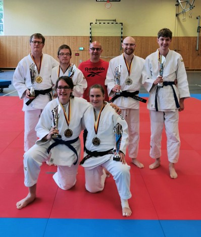 Am vergangenen Wochenende fanden die offenen Landesmannschaftsmeisterschaften im ID-Judo in Oberhausen-Osterfeld statt. 84 Judoka hatten sich in diesem Jahr angemeldet. 10 ID-Judoka vom 1. Budokan Hünxe nahmen an diesen Meisterschaften erfolgreich teil. In der Mannschaftswertung belegten die Hünxer Judoka bei den Frauen den 7. Platz und bei den Männern konnte der Pokal für den 2. Platz in Empfang genommen werden. In der Einzelwertung konnte Björn Kamps sich einen 5. Platz in der Wettkampfklasse 2 erkämpfen. Ebenfalls in der WK2 belegte Thorben von Kneten den 4. Platz. Silbermedaillen gewannen Niko-klein Allermann (WK3) sowie Lennart Klaus in der Wettkampfklasse 2. Insgesamt 6 Goldmedaillen rundeten das gute Gesamtergebnis ab. In der WK 3 gab es Gold für Justin Blöhm und Julian Balluff. Die weiteren Goldmedaillen erkämpften sich in der WK 1 Andrea Kuhne, Victoria Breidenstein, Bastian Wind und Timo Karmasch