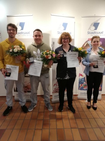 v.l.n.r. vordere Reihe: Aileen Borowski (1.), Michael Lorré (2.), Bryan Dierks (2.)